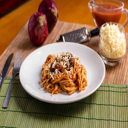 Um clássico! Nossas Almôndegas caseiras, feitas com carne de primeira qualidade, são servidas com macarrão e um molh... Ver completo